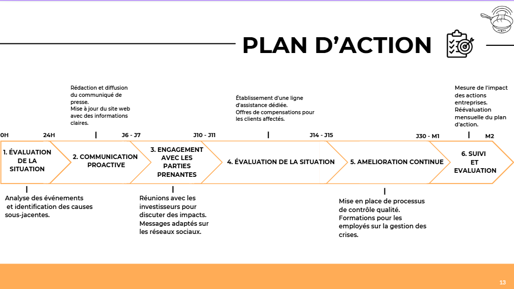 L’exercice incluait également une simulation de gestion de crise suite à un incident impliquant le produit. Nous avons analysé la situation, pris des décisions appropriées et mis en place une stratégie de communication de crise pour protéger l’image de l’entreprise et maintenir la confiance du public.